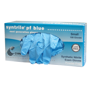 Blue Nitrile gloves in box of one hundred.