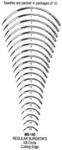 Regular Surgeon's Needles, 3/8 circle, cutting edge, reverse cutting