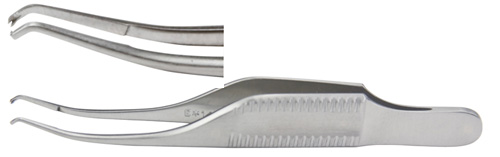 TROUTMAN-BARRAQUER Colibri Type Corneal Utility Forceps, 3" (7.6 cm), 1 X 2 teeth, 0.4 mm, set at 45 degree angle, with tying platform
