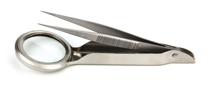 VANTAGE Splinter Forceps, 3" (7.6 cm), with magnifier, in black plastic case